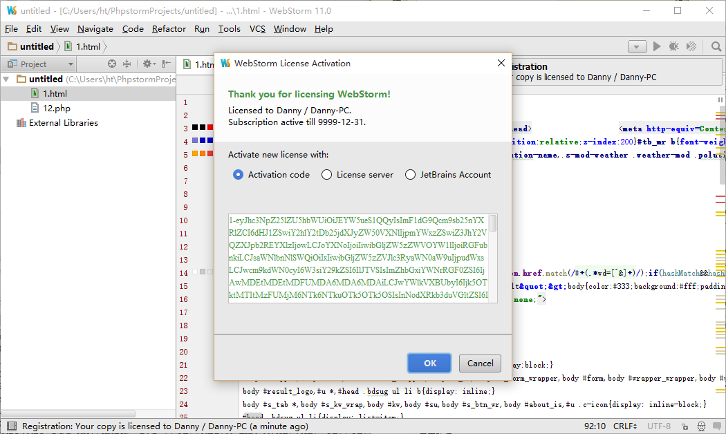 WebStorm适用于Windows,Mac OS或Linux有一个许可证密钥。
