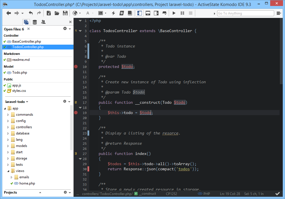 ActiveState Komodo IDE 是跨平台IDE为所有的主要语言,包括Python,PHP,Go,Perl,TCL,Ruby,NodeJS,HTML,CSS,JavaScript和更多。代码智能引擎非常可靠。它扫描所有语言安装找到定制扩展,比如 PEAR 模块。