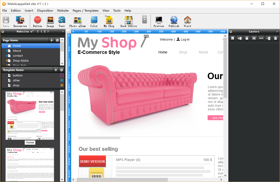 使用“插入”菜单中的元素添加到您的网页(图像,文本区域,按钮,菜单等)。