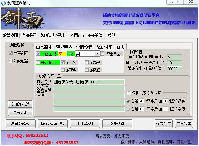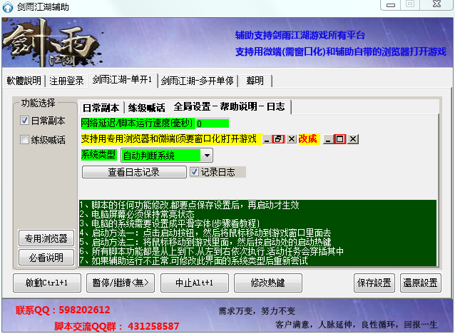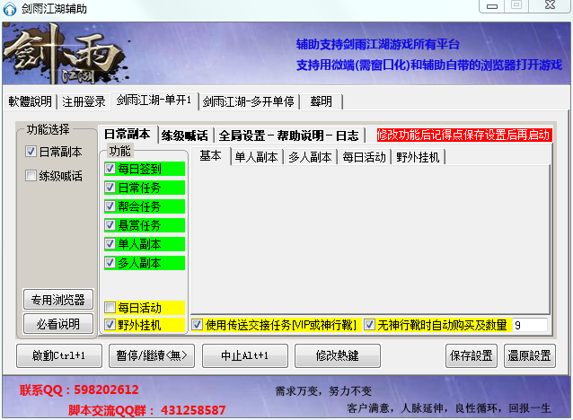 1、脚本的任何功能修改,都要点保存设置后,再启动才生效