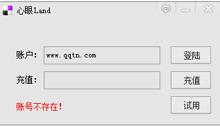 1、首先打开心眼主线程序,随便输入一个帐号,点击登录,会提示帐号不存在,那直接关闭程序窗口。