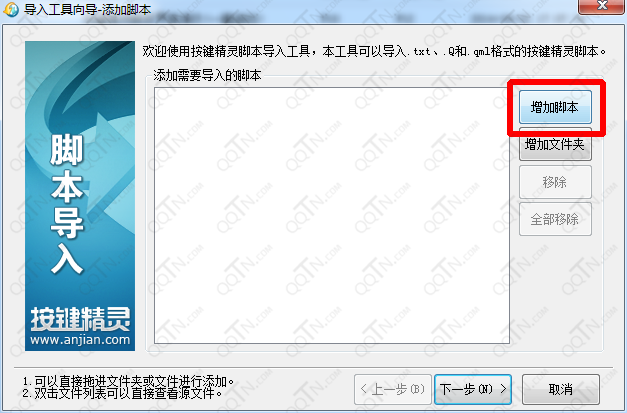 3、然后点击增加脚本,将刚才下载解压的脚本文件添加进来