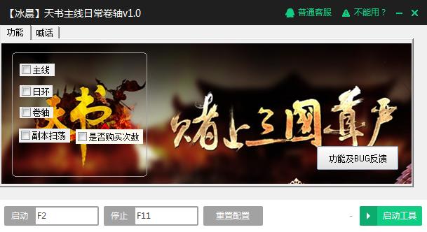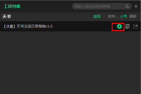 4.在天书辅助工具中“启动”“【冰晨】天书主线日常卷轴v1.0”