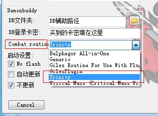 Combat routine: 这个英语的意思是指“战斗模块” 请选择“Trinity”