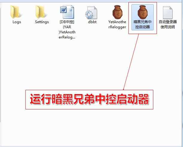 第一步:请先把“DB辅助文件夹中” 暗黑兄弟启动器 打开,然后最小化至任务栏,不能关闭哟亲。只要打开就行了。