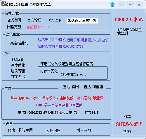 想获取反恐精英online2激活码与礼包就使用CSOL2工具箱,此外CSOL2绿色工具箱还提供游戏优化、补丁下载、垃圾清理以及万人瞩目的躲猫猫功能。
