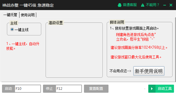 神战赤壁练级脚本可帮助玩家一键主线任务,并支持自动升级技能,挂机练级轻松搞定快速升到45级,超级稳定。