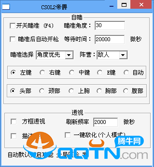 CSOL2辅助大全又新增一名成员来,它就是CSOL2帝爵辅助,由腾牛小编整理收集,目前处于开发测试阶段,功能涵盖了自动瞄准、人物透视、自动开枪等功能,欢迎各位玩家前来下载使用。