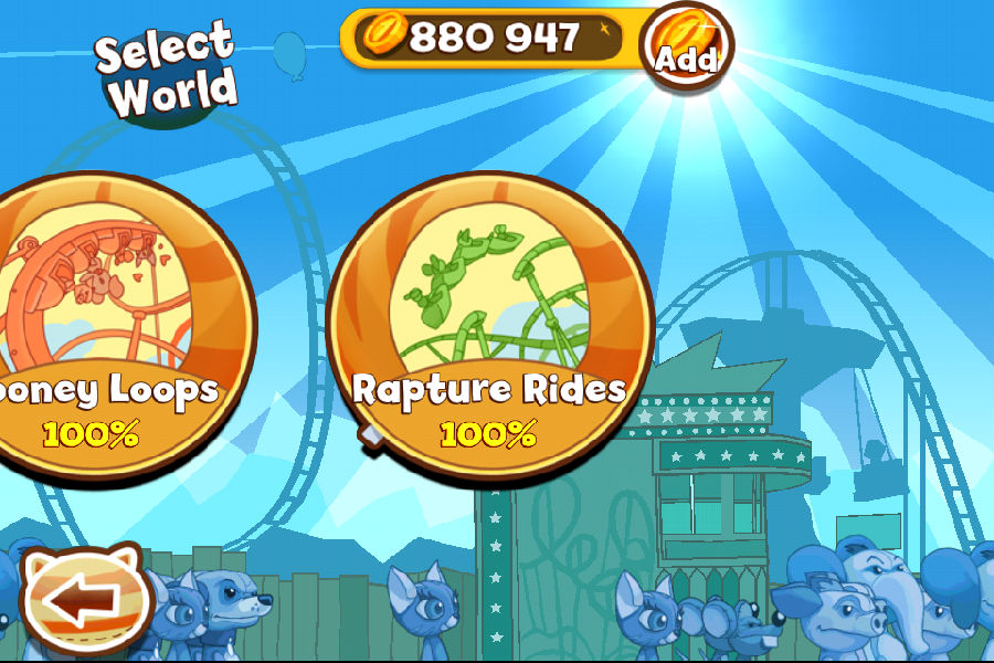 《动物过山车》是一款卡通风格的休闲游戏,由育碧公司推出。该游以过山车为主题,玩家需要用重力感应来控制过山车的速度,使其能够安全运行。车上的各类游戏客们分别为老鼠、猫、狗、猪、大象等动物,它们各自拥有自身特技,可以帮助过山车在轨道上加速、收集、甚至飞行。