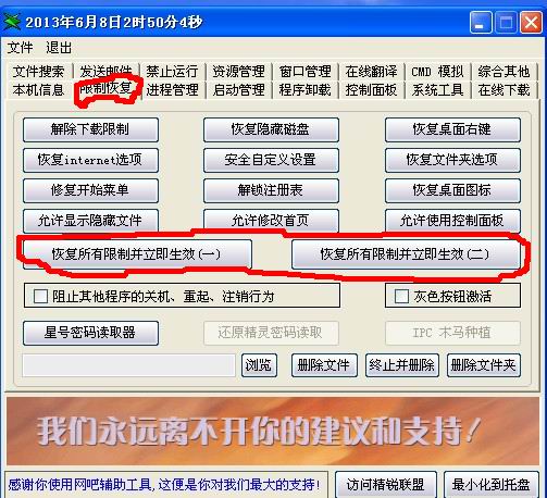 在网吧上网,电脑受到了很多限制,很多功能都实现不了,腾牛网建议使用佳佳辅助网吧解除限制工具,可以实现大多数被网管限制的功能。