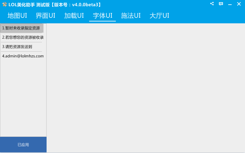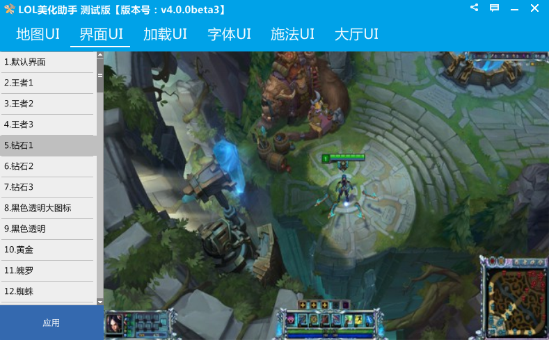 LOL美化助手测试版向玩家免费提供了地图UI、界面UI、加载UI、字体UI、施法UI以及大厅UI修改更换功能,因此版本是beta版,所以功能还将继续完善。