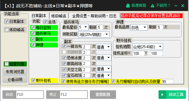 新浪战无不胜辅助目前仅提供了1个游戏脚本,主要支持一键主线、每日签到、自主副本、自动喊话等功能,是战无不胜玩家升级练号必备工具。
