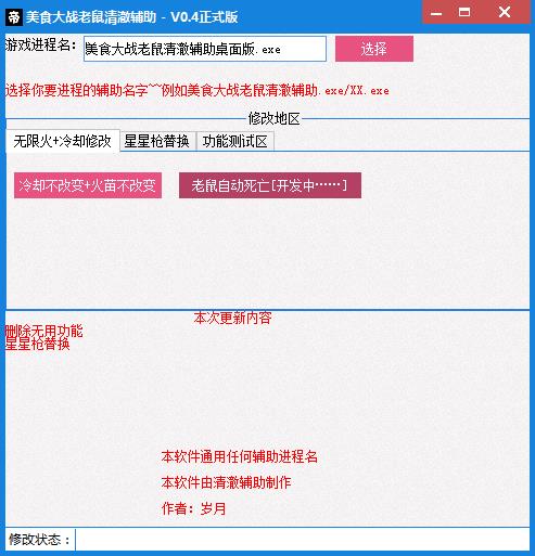 美食大战老鼠是一款有趣的策略塔防游戏,这款游戏模仿经典游戏植物大战僵尸制作,当然也就少不了游戏修改器了。在这里小编为大家精心整理了一批美食大战老鼠修改器,它可以帮助玩家火盆秒杀、武器修改、等级修改等多