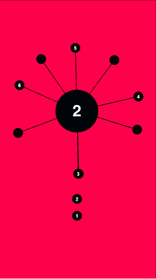 点击屏幕让屏幕下方的小球全部附在大球上,且没有与其他小黑球产生碰撞即可过关。