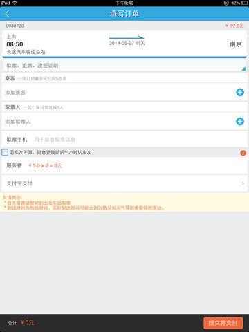 汽车票预订,支持300多个城市直接预订;