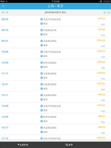 准确翔实汽车票时刻、车次、余票一站式查询预订;