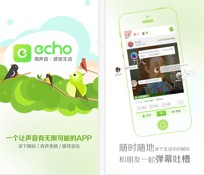 2、用echo回声随时随地录下精彩,制作有声音的表情,分享你爱的音乐