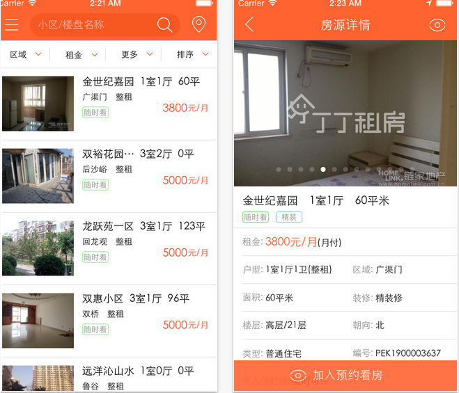 丁丁租房,开启中介免费时代,手机租房-让租房生活更美好!6道验真工序节约您的每一分钟,房源采集-实地验房-现场拍照-调价跟踪-出租跟踪-房源下架,数千位经纪人实地验真小区真、图片真、价格真、业主真、状态真,1对1专属服务,经纪人全程陪看、APP签约及物业交割。
