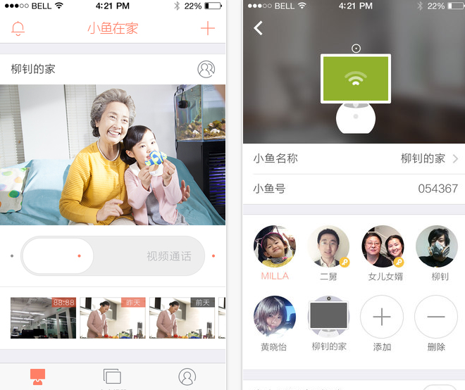 安装小鱼在家手机app后,即可通过app远程操控小鱼在家家庭陪伴机器人(简称“小鱼”)。手指轻轻一划就可以利用碎片化的时间,快速回到家中看一看,陪家人面对面视频通话,就像家人聚在一起聊天一样真实而自然。
