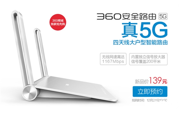 360智能硬件今日发布一款路由新品,360安全路由5G版本,真5G似天仙大户型智能路由器,信号覆盖面积达到200平米,无论你走到家里那个地方都会有信号;支持全新802.11AC协议,可以匹配所有主流的上网设备连接,无论是看视频、玩游戏、确保高清不延迟。